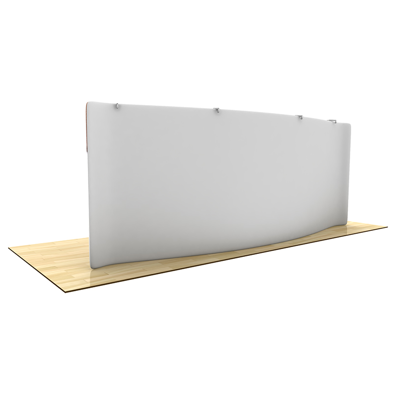 Our 20ft curved tension fabric display is a very popular trade show, exhibit and special events display option due to its ease of transport, ease of set up, and very economic price. The frame and graphic together are extremely lightweight and easy to ship if needed. Your display will set up in just minutes and look fantastic. The graphic is perfectly stretched across the Wave Tube frame to create a virtually wrinkle-free surface.